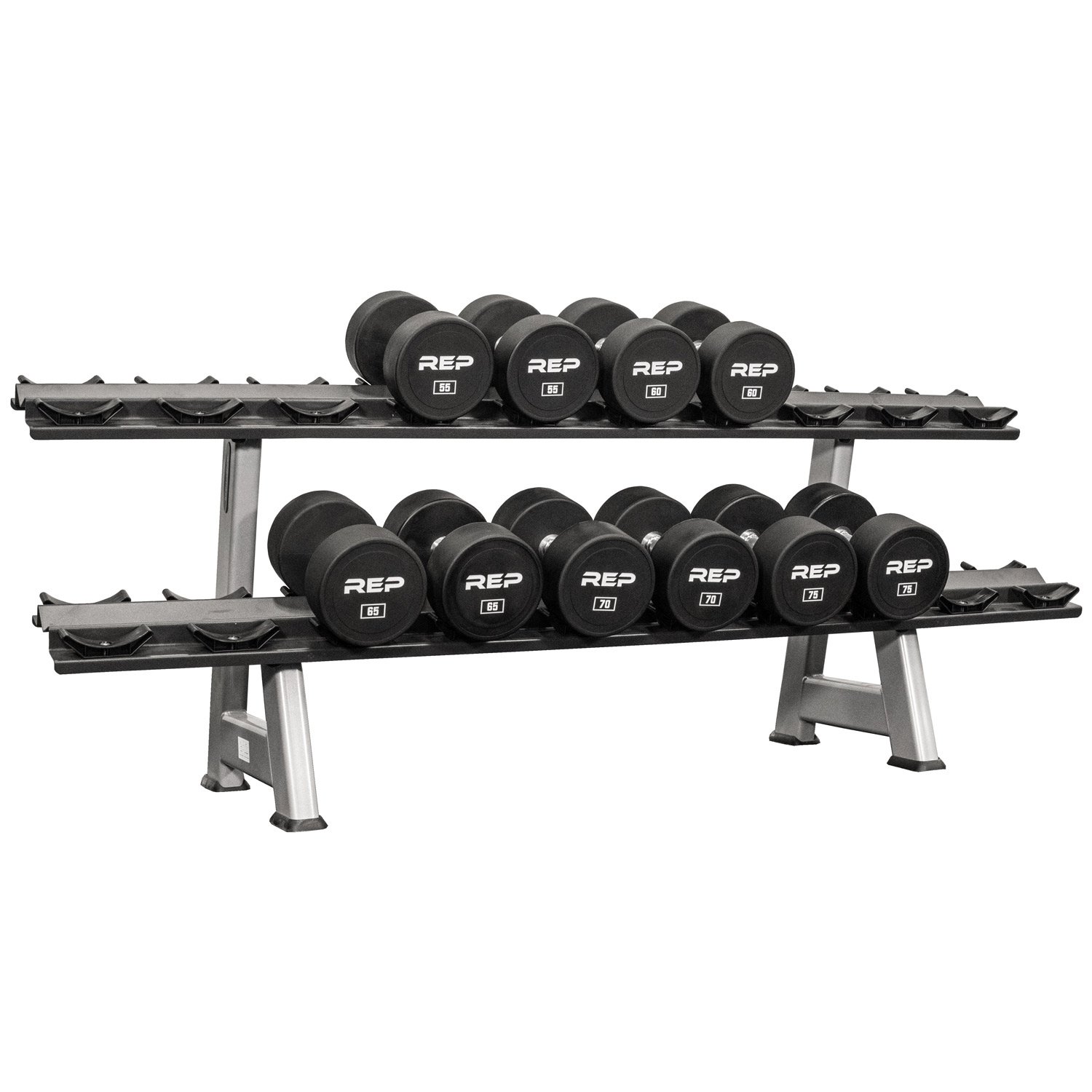 8-32kg Set with Rack. The chrome plated handle is straight and fully knurled for maximum grip. Check out Rep 5-75 lb Rubber Hex Dumbbell Set with 2 Racks reviews ratings specifications and more at Amazonin.